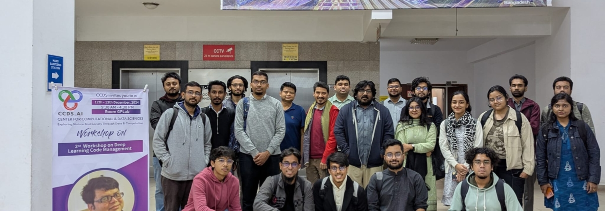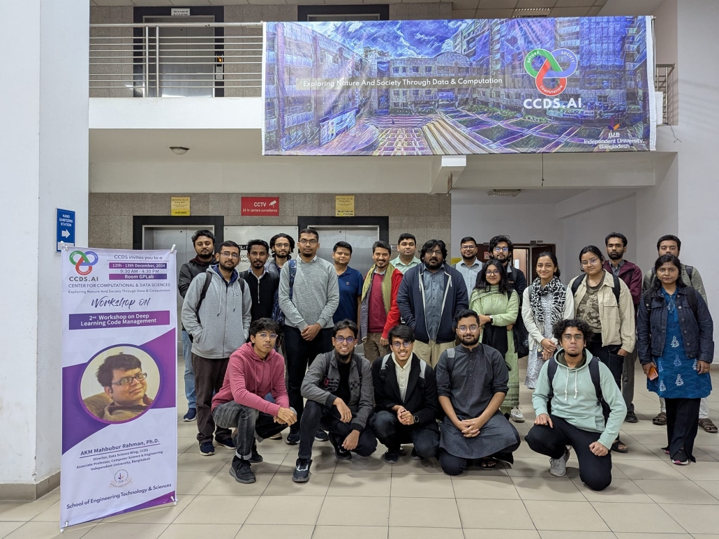 This is the 2nd iteration of the workshop. This time we invited 28 graduates from IUB, NSU, BRAC U, UIU, MIST, IUT, AUST, Science University of Malaysia, DU, and BUET who had applied for a research intern position in CCDS. Together with them graduates and undergrads from IUB joined the workshop. Topics included hands on coding on CNNs, LSTMs, Transformers, as well as code management and visualization using VS code, PyTorch Lightening, and wandb.ai.